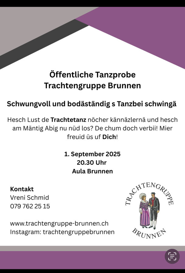 Unsere Proben finden jeweils am Montag von 20:30 Uhr bis 22:00 Uhr in Brunnen statt.
